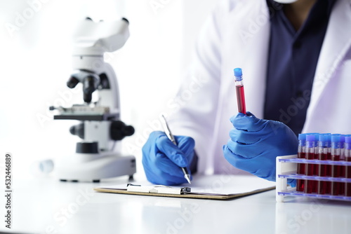 Lab worker preparing test blood for detection of antibodies and infections Corona virus.