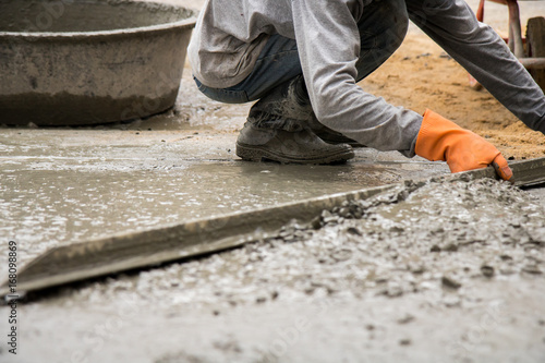 labor plastering cement with trowel for build new floor for renovation house