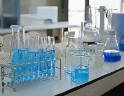 Laboratory equipment and instruments, representing scientific research, experimentation, and analysis.
