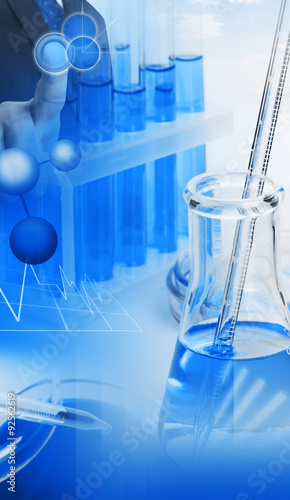 Laboratory equipment with blue liquid