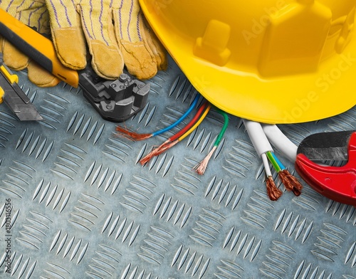 labour day concept, hard hat on the desk