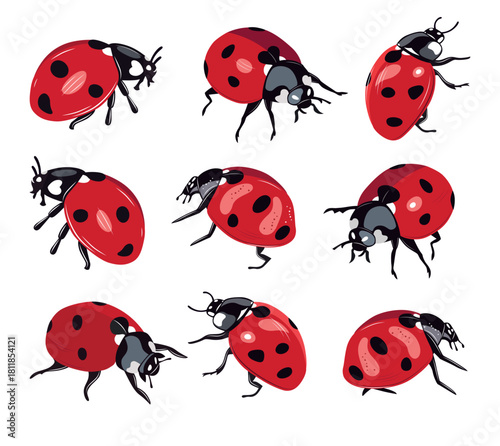Ladybug insect red and black color. Summer bug. Meadow insects.