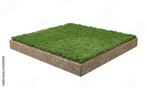 land ground or earth soil land and green grass section isolated on white background. 3d illustration