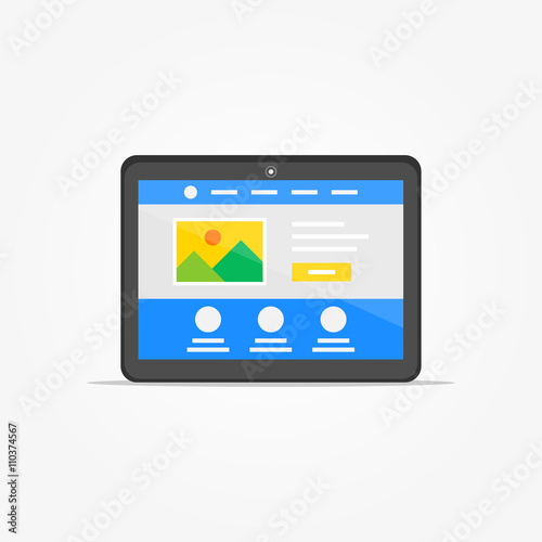 Landing page tablet vector illustration. Responsive (adaptive) web design technology creative concept. Friendly user interface landing page graphic design.