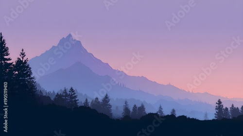 Landscape of a sharp mountain peak with pine forest silhouette
