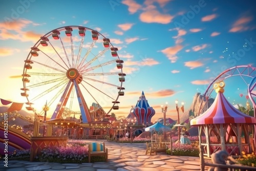 Landscape outdoors carnival sunset.