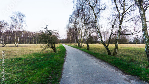 Landschaft mit Wanderweg und Birkenwald