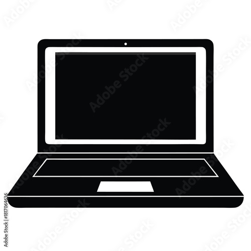laptop black and white silhouette on white background