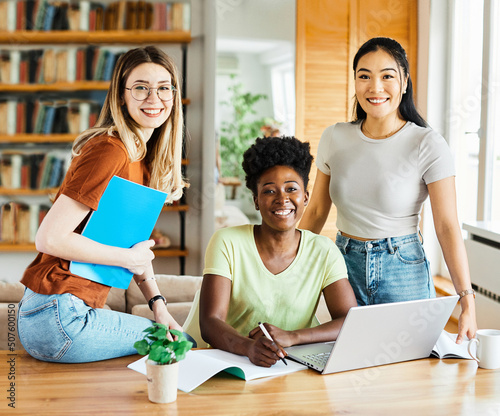 laptop computer girl woman home technology female internet young office business lifestyle student happy communication diversity teamwork multiethnic friend