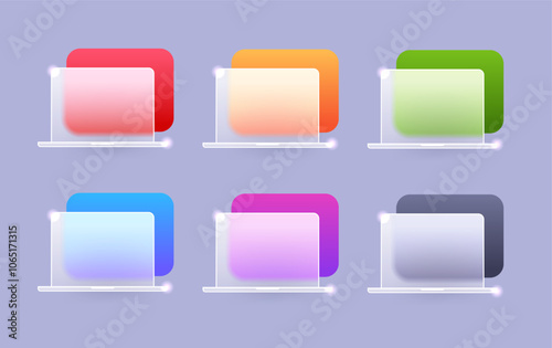 Laptop glass morphism icon set in various color. Vector notebook symbol illustration