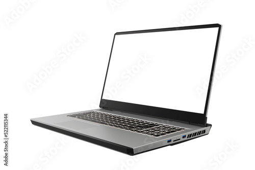 Laptop with blank screen isolated on white background
