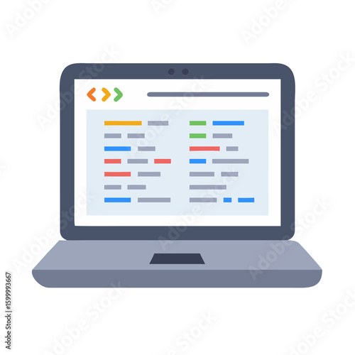 Laptop with Code Editor Flat Vector Illustration Showcasing Software Development and Programming, Perfect for Tech Blogs and Educational Materials