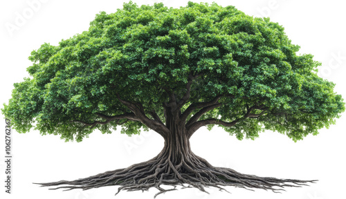 Large banyan tree with exposed roots, isolated on transparent background. Nature and tranquility concept