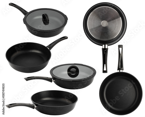large cast iron frying pan with non-stick coating, isolated on a white background