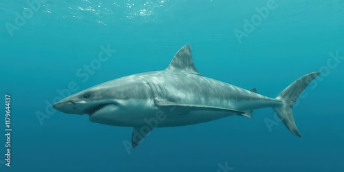 Large great white shark isolated, swimming gracefully, transparent background, marine life