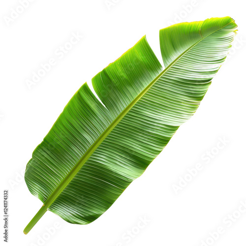 Large green tropical leaf with prominent veins and smooth texture, ideal for nature themed designs and backgrounds