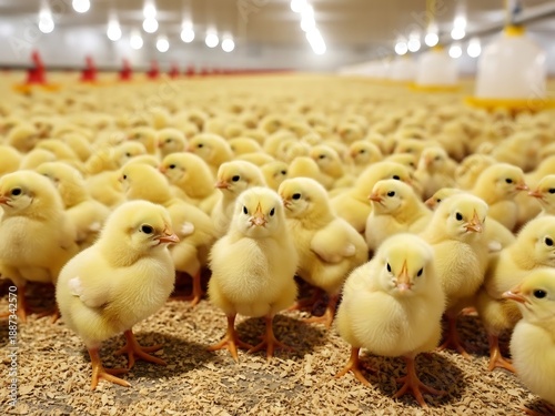 Large Group of Yellow Baby Chicks in a Poultry Farm. Generative Ai