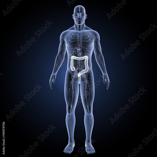 Large intestine with circulatory system anterior view