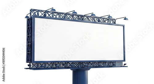 Large modern billboard with blank white screen and metal frame on grey background