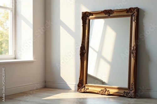 Large Ornate Gold Framed Mirror Reflecting Sunlight in a Room