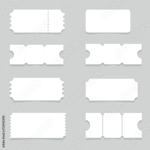 Large set of ticket templates. Ticket to a concert, cinema, circus, coupon. Vector illustration