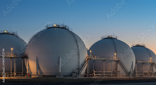 Large Spherical Gas Storage Tanks at Industrial Facility Under Twilight Sky