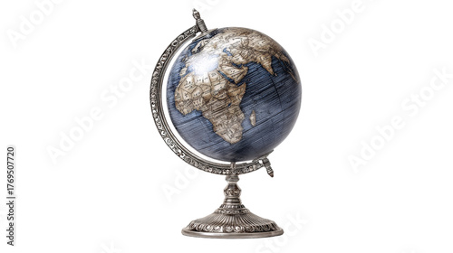 Large tabletop world globe with metal axis and ring, background isolated on a Transparent background, PNG file.