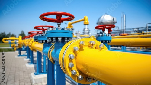 Large tanks and pipelines at a gas processing plant, industrial perspective