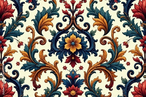 Large-scale damask pattern with bold acanthus leaves and swirls , pattern, photography