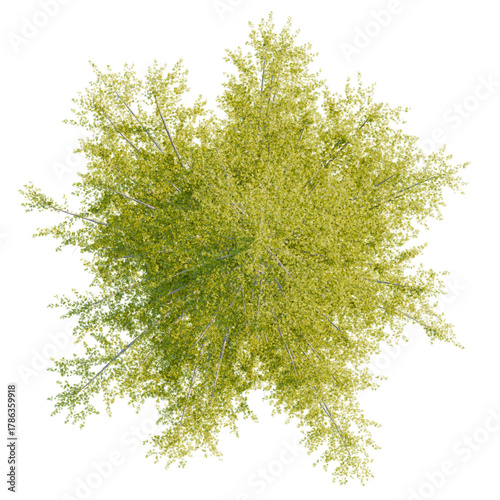 Larix laricina tree plan, top view, cutout, transparent background, isolate, Vibrant green tree canopy viewed from directly above, perfect for design