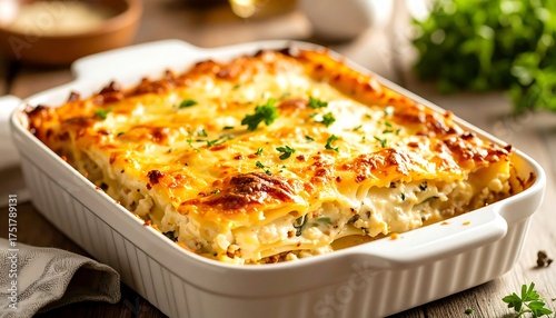 Lasagna in a baking dish