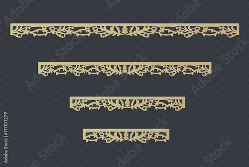 Laser cut template panels set. Die cut geometric pattern rectangle shape for metal , wooden, paper, engraving, stencil. Vector illustration design.