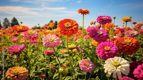 flower, field, zinnia, late summer, vibrant, nature, bloom, colourful, bright, serene, tranquil, beauty, sunny, scenic, landscape, flora, greenery, flower petals, idylli, calm, picturesque, background, wallpaper, panoramic, sunny day, natural, growth, fresh, environment, many-coloured, wildflower, summer, garden, lush, botanical, radiant, blooming, perennial, seasonal, high-coloured