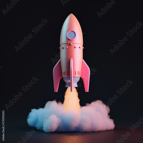 Launching rocket model taking off against black background. Concept of project launching in business.