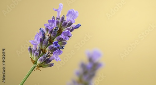Lavender Flower Closeup on Gold Background Botanical Still Life