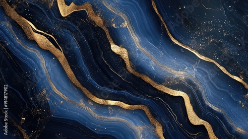 Lavish 3D luxury background with navy blue marble and gold details, high-end design