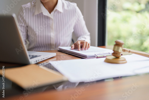 Lawyer woman working on laptop and reading to checking legal agreement of business contract