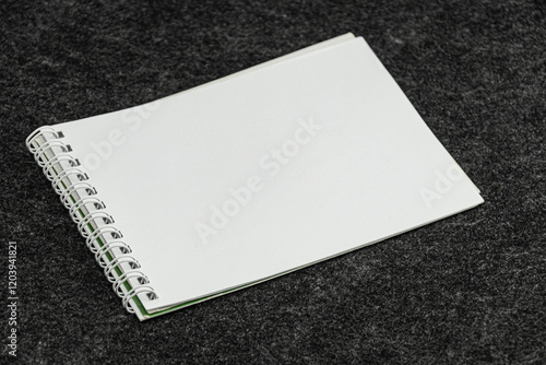 Layout of white book, notebook, notebook, blank notebook cover on gray background. Layout is ready for preview.