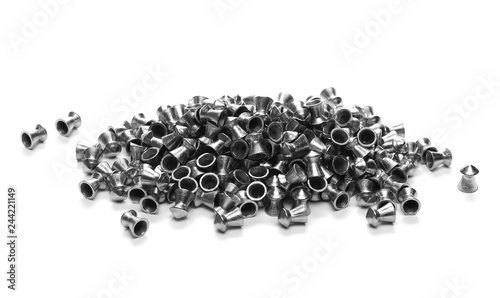 Lead pellets for air rifle isolated on white background and texture