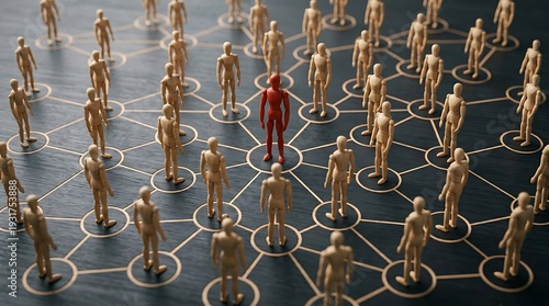 Leadership Concept with Red Figure Standing Out in a Network of Human Connections