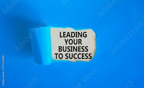 Leading your business to success symbol. Concept words Leading your business to success on beautiful white paper. Beautiful blue paper background. Leading your business to success concept. Copy space