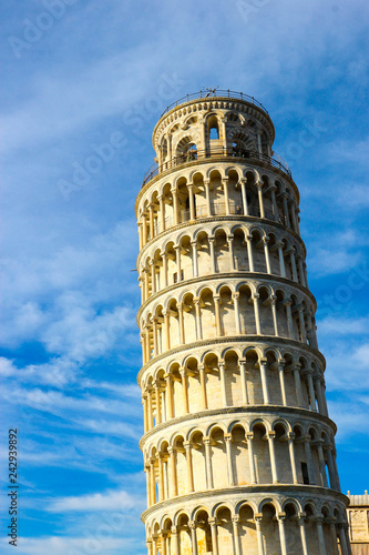 Leaning tower of pisa winter view with a sky and clouds, Tuscany, Italy