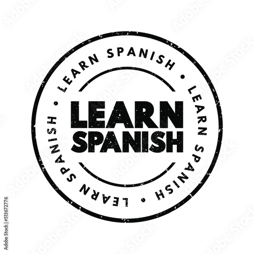 Learn Spanish text stamp, concept background
