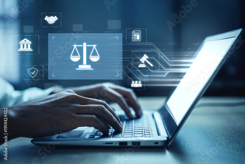 Legal compliance and governance concept showing justice scale, courthouse, contract, policy, agreement, rule, and protection of rights in legal or business environment Vouch
