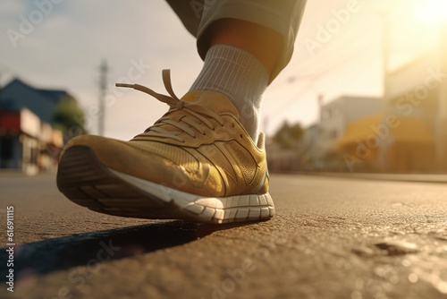 legs of a running man in sneakers. generated by AI.