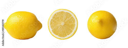 Lemons isolated whole, cut slice, whole