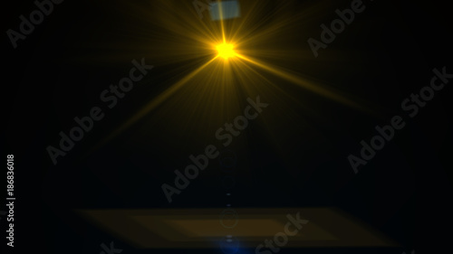 Lens flare light over black background. Easy to add overlay or screen filter over photos