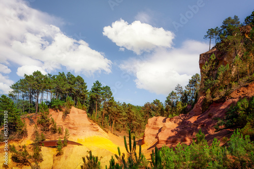 Les Ocres du Roussillon, footpath and red rocks. Provence, France