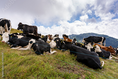 Les vaches se reposent sur la montagne- en été- à Chatel-France