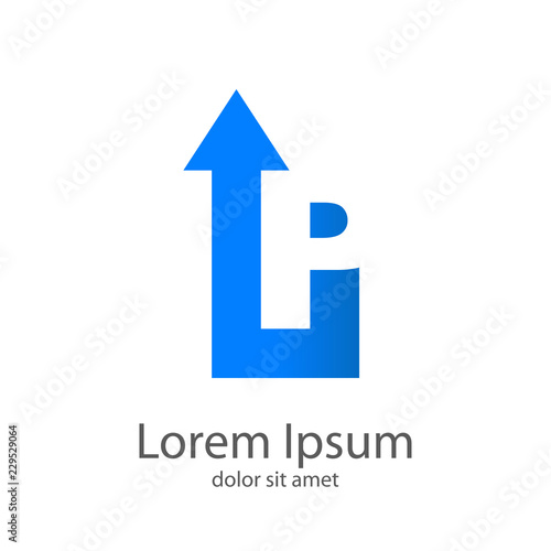 Letra P con flecha espacio negativo azul